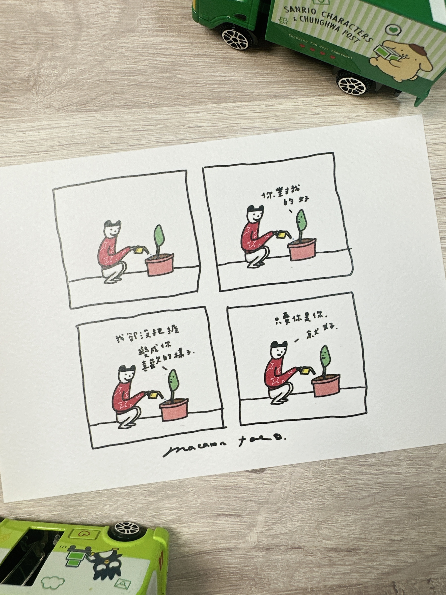 四格故事明信片|小山的肩膀-馬卡龍腳趾